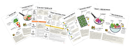 8 Flexible templates to make cooking a breeze with whatever ingredients you have in your kitchen. Includes my beloved Sheet Pan Formula, Stir Fry Template, Low Sugar Smoothie Guide, and so much more.